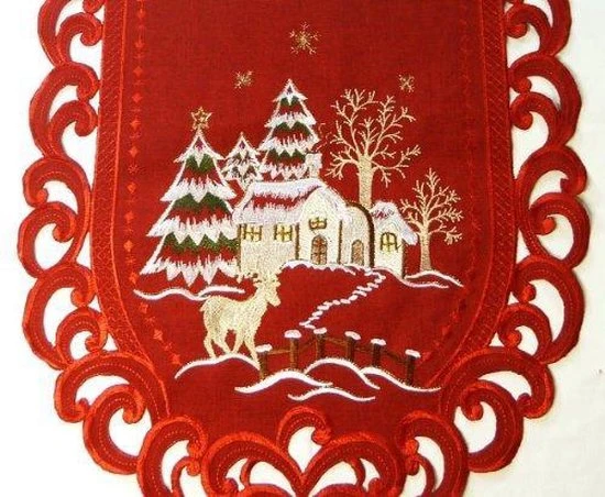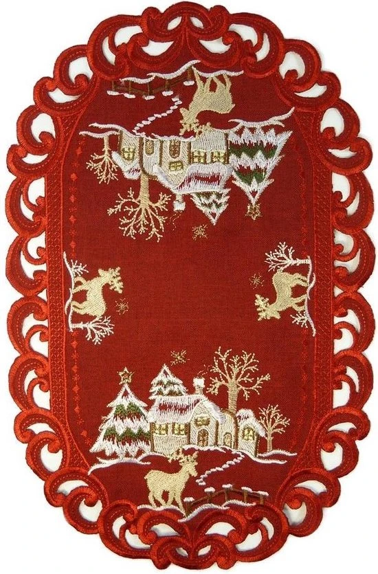 Tafelkleedjes.nl Kerstkleed – Linnenlook – Hert – Rood – Loper 45 Cm X 40 Cm – 8837