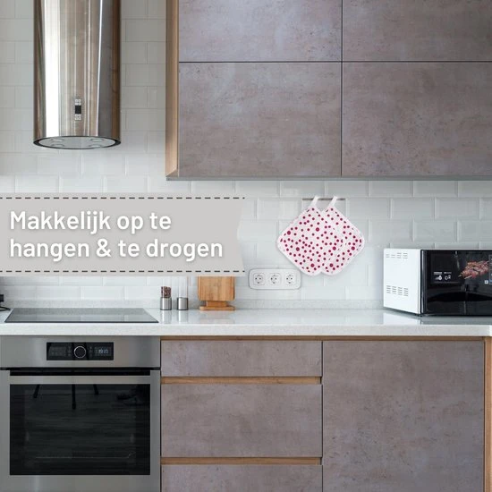 Kwaliteit Dankzij de hoge kwaliteit van deze keukenhandschoen en pannenlap beschermt het uw hand extra volledig tegen hete platen en schalen tot maximaal 200° graden.