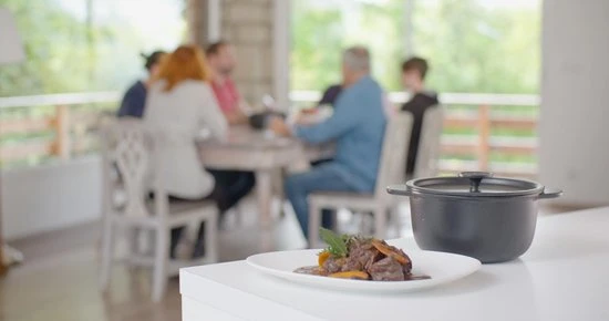 Dankzij de druipringen aan de binnenkant van de deksel, valt de condens terug op het gerecht, waardoor deze extra mals wordt.
