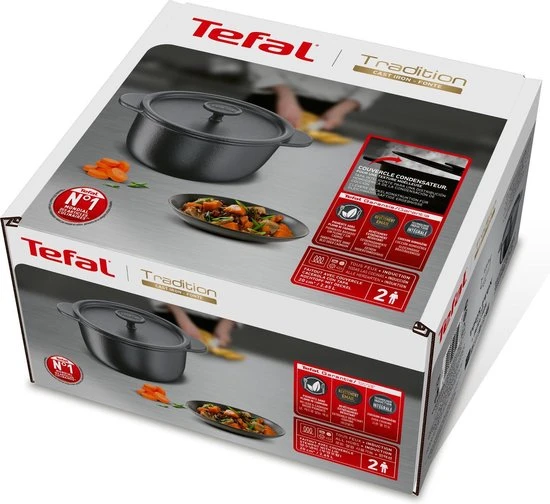 De Tefal Tradition Braadpan – Ø20 cm is ideaal voor slow cooking, stoven en braden. Een belangrijk voordeel van gietijzer is dat dit lang warmte kan vasthouden. De druipringen aan de binnenkant van de deksel en de hoge opstaande rand aan de buitenkant, zorgen ervoor dat je veel condens kunt creëren. Meer condens betekent een extra mals resultaat!