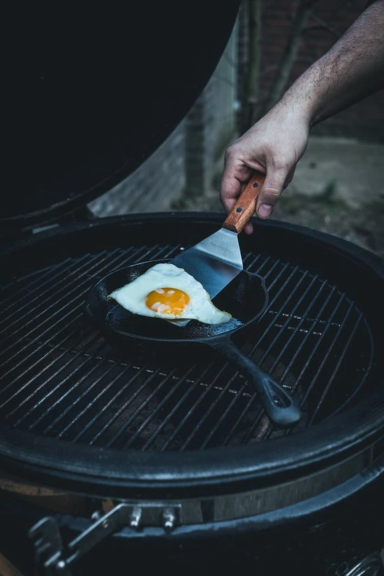 Met deze The Windmill Skillet koekenpan kan het niet meer fout gaan. De warmte wordt mooi verdeeld over het hele kookoppervlak, perfect. Of ik ‘m nu op de bbq plaats of boven een vuurkorf, mijn ei is altijd een succes, nu die van jou nog! Deze skillet van The Windmill Cast Iron is bruikbaar op gas, inductie, open vuur en op de barbecue. De pan heeft een platte bodem en is daardoor makkelijk op het rooster van de barbecue te plaatsen. In combinatie met een trivet kan deze pan boven kolen of briketten geplaatst worden. Ook heeft de pan een schenktuit aan beide zijkanten.