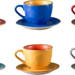 Vivi Oggi – Koffiekopjes Set Van 6 – Ø 9cm – Cappuccino – Kop En Schotel – 150 Ml – Italië