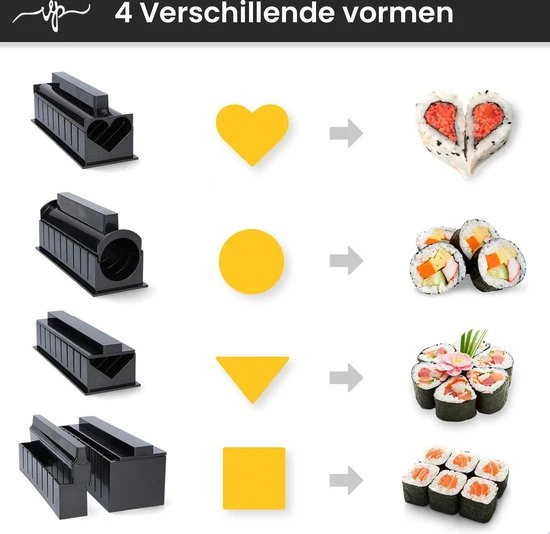 Sushi is tegenwoordig erg populair en overal verkrijgbaar. Maar hoe leuk zou het zijn als je zelf sushi zou kunnen maken. Dit bespaart je een hoop kosten en het is ook nog eens erg om te doen. Zelf sushi maken is nog nooit zo gemakkelijk geweest met deze 20-delige sushiset. Het is zelfs zo gemakkelijk dat deze sushi set ook zeer geschikt is voor kinderen. Naast de gebruikelijke ronde vorm, is het ook mogelijk om andere vormen maken zoals hartvormige sushi.